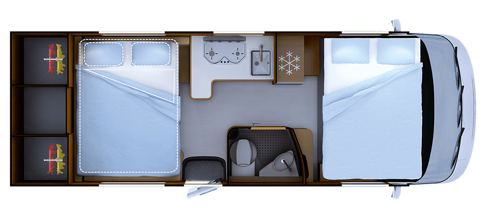 * 2+2+2 Avec option lit plafond **Places ceintures, pour nombre places carte grise voir guide technique. ***TRUMA Combi 6 iNet X