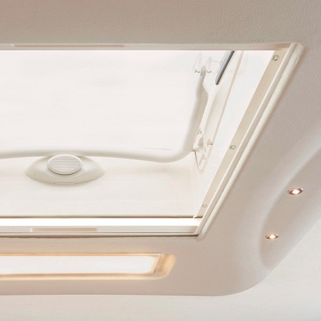 - Tuulilasin kaksoislaskostettu lämpöeristetty liukuverho: ylhäältä alas (aurinkosuoja) ja alhaalta ylös (näkösuoja)
