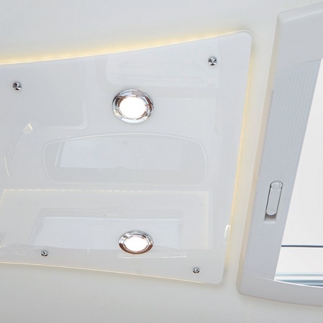 - Oleskelutilan kattolamppu taustavalaistulla pleksiverhoilulla